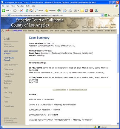 i went to the la superior court website and there’s a civil case index to look up cases by name, but there’s a $4.75 fee. maybe later today.