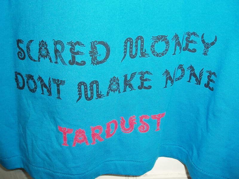 damn, i want that green shirt’s front with the blue shirts back - ‘scared money don’t make none’ was one of my favorite lines on tardust.